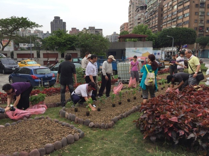 可食地景可將社區的「菜園」變成「花園」,圖為新北市永和區綠家園社區民眾營造可食地景的情形。照片來源:新北市農業局綠美化環境景觀處提供